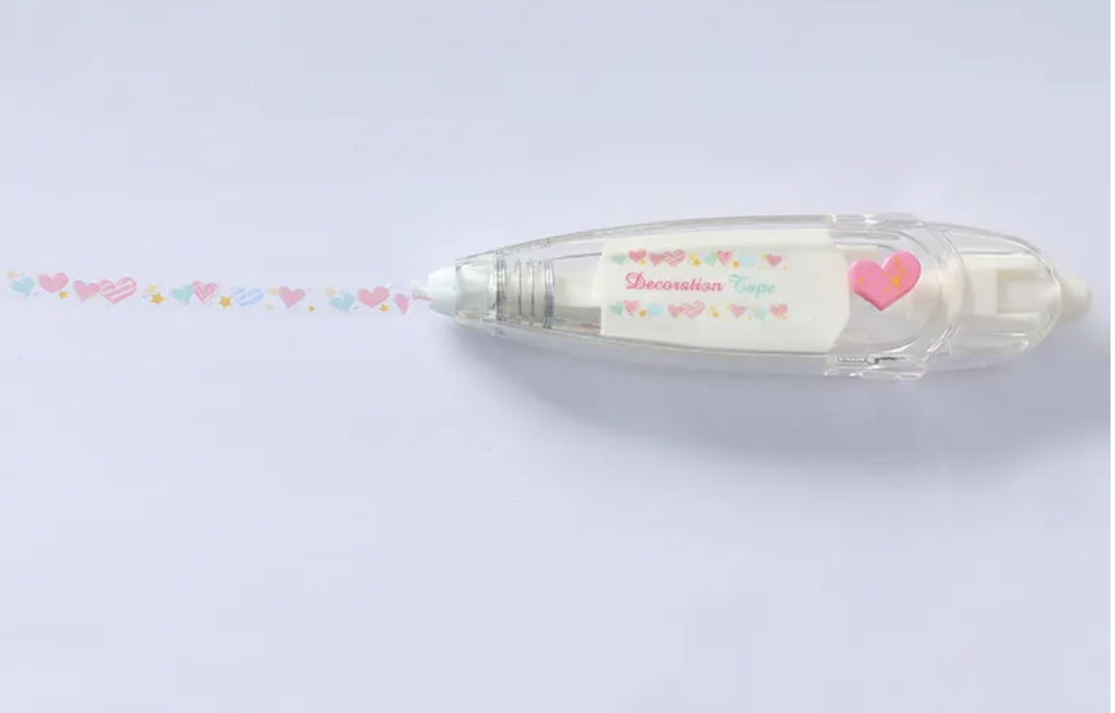 Create beautiful designs with ease using our Cute Decorative Correction Tape Pens. Choose from Hearts or Stars design and add an extra touch to birthday cards, photo albums, and diaries. Convenient to use: simply hold the dispenser with your thumb, position the tip on your paper, press down firmly, and gently move from left to right. Each pen contains 0.6cm x 4.8 metres of tape for long-lasting use. Buy now and unleash your creativity!