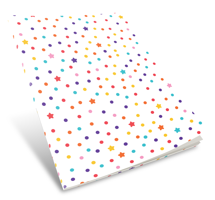 This Dots and Stars book cover features colorful dots and stars on a clean and simple white background. It's a fun and playful design that will brighten up any school day.