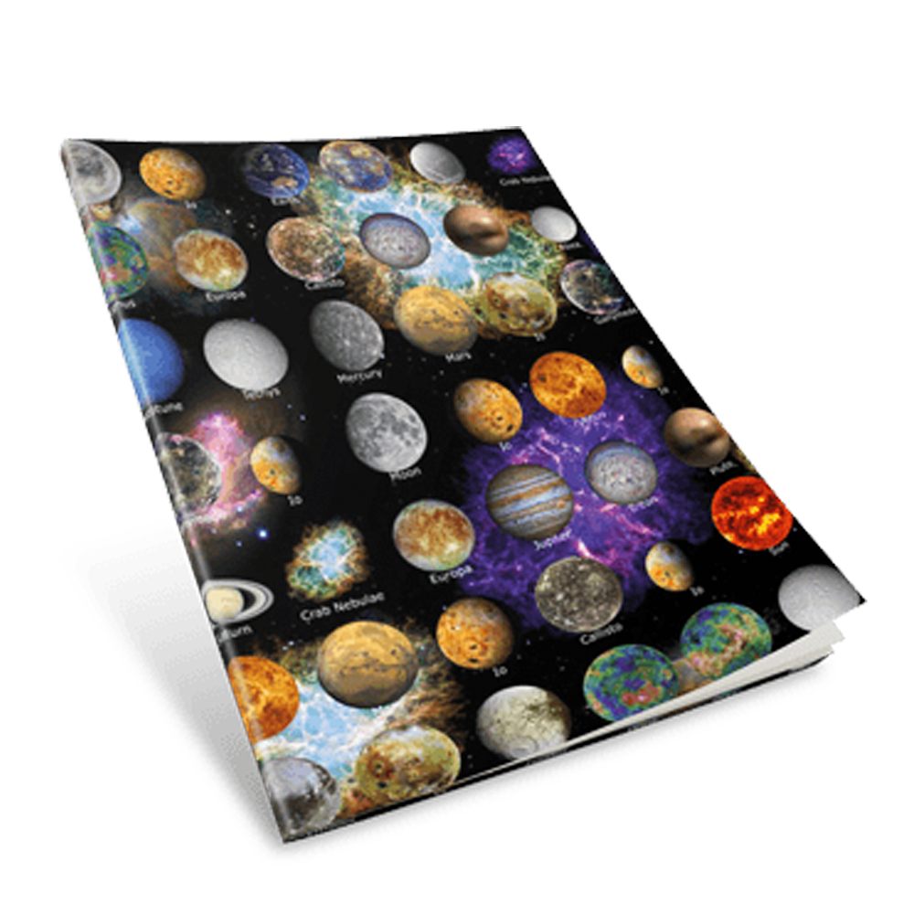 There is so much to see in the night sky. For the enthusiast in your house, this Space school book cover gives a close up look at the planets while you’re waiting for it to get dark again outside.